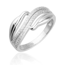 Srebrny pierścionek - polerowany z cyrkoniami na dole - obrączka