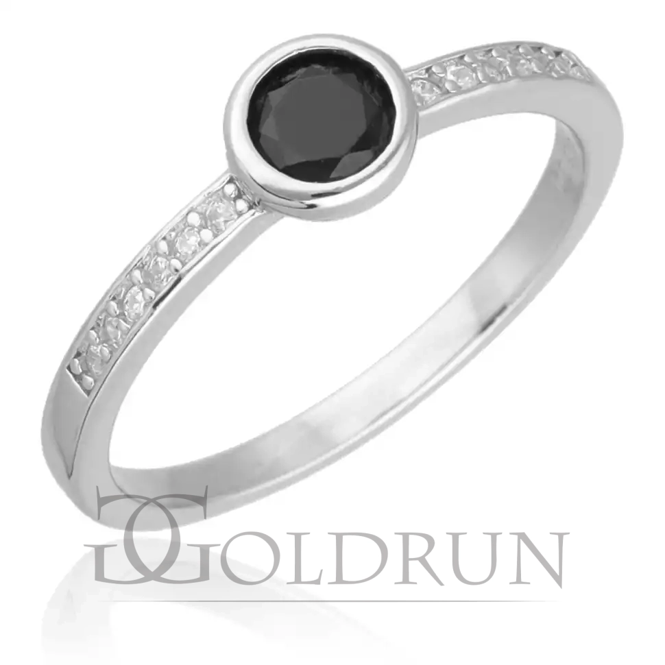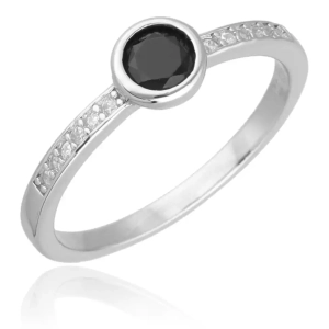 Srebrny pierścionek z czarną cyrkonią i cyrkoniami bo bokach