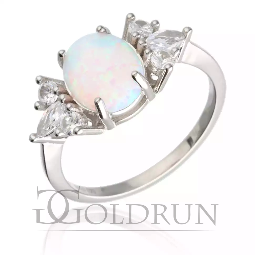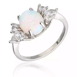 Srebrny pierścionek z opalem i cyrkoniami po bokach