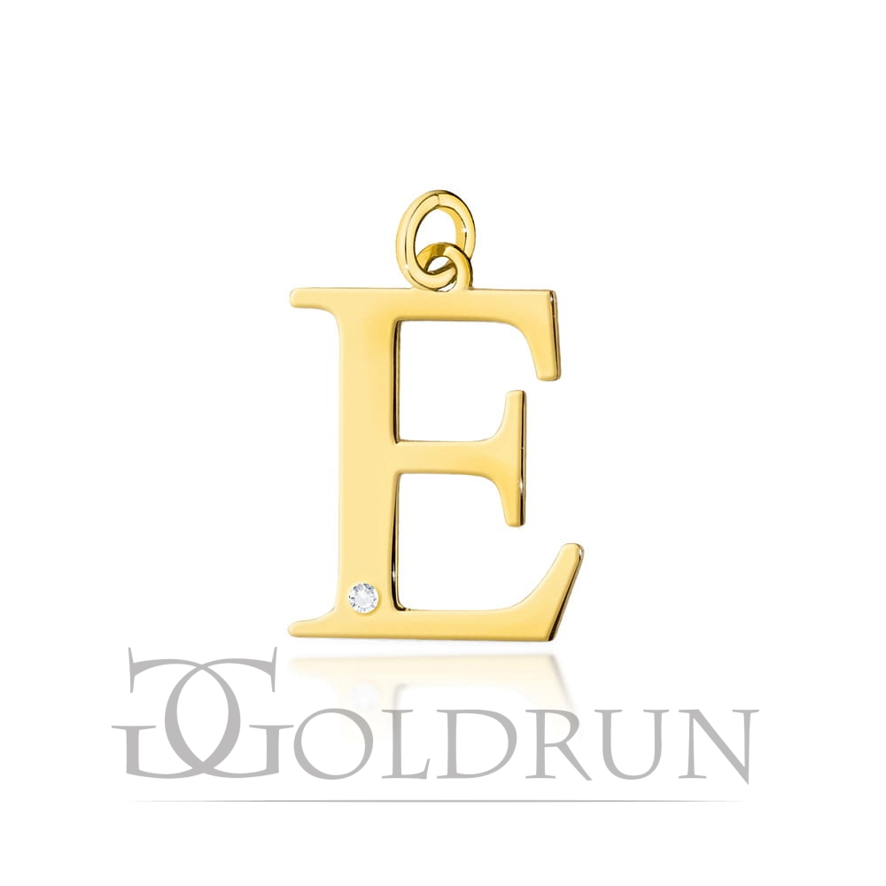 Zawieszka duża literka E z żółtego złota 585 z diamentem 0,005ct The Diamonds