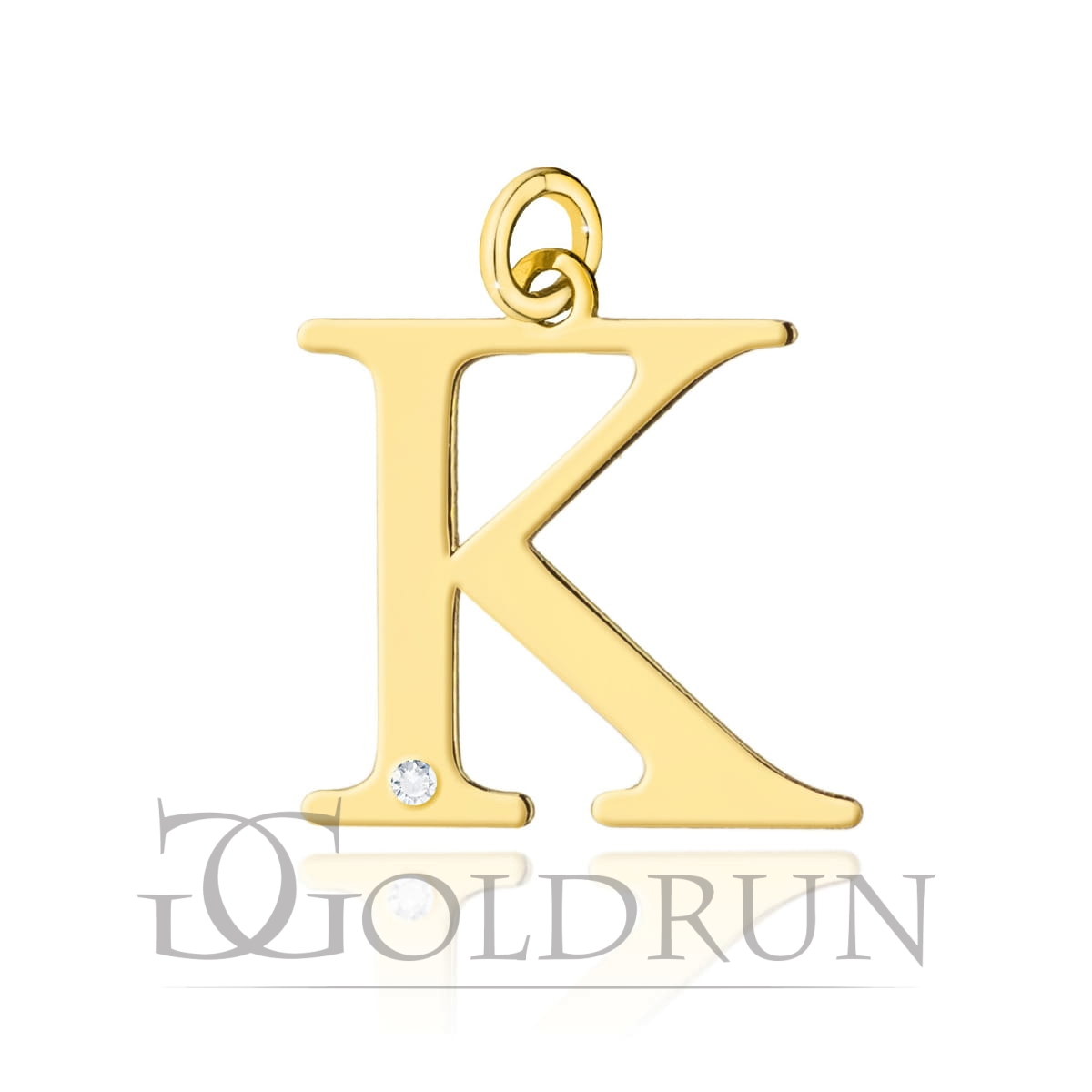 Zawieszka duża literka K z żółtego złota 585 z diamentem 0,005ct The Diamonds
