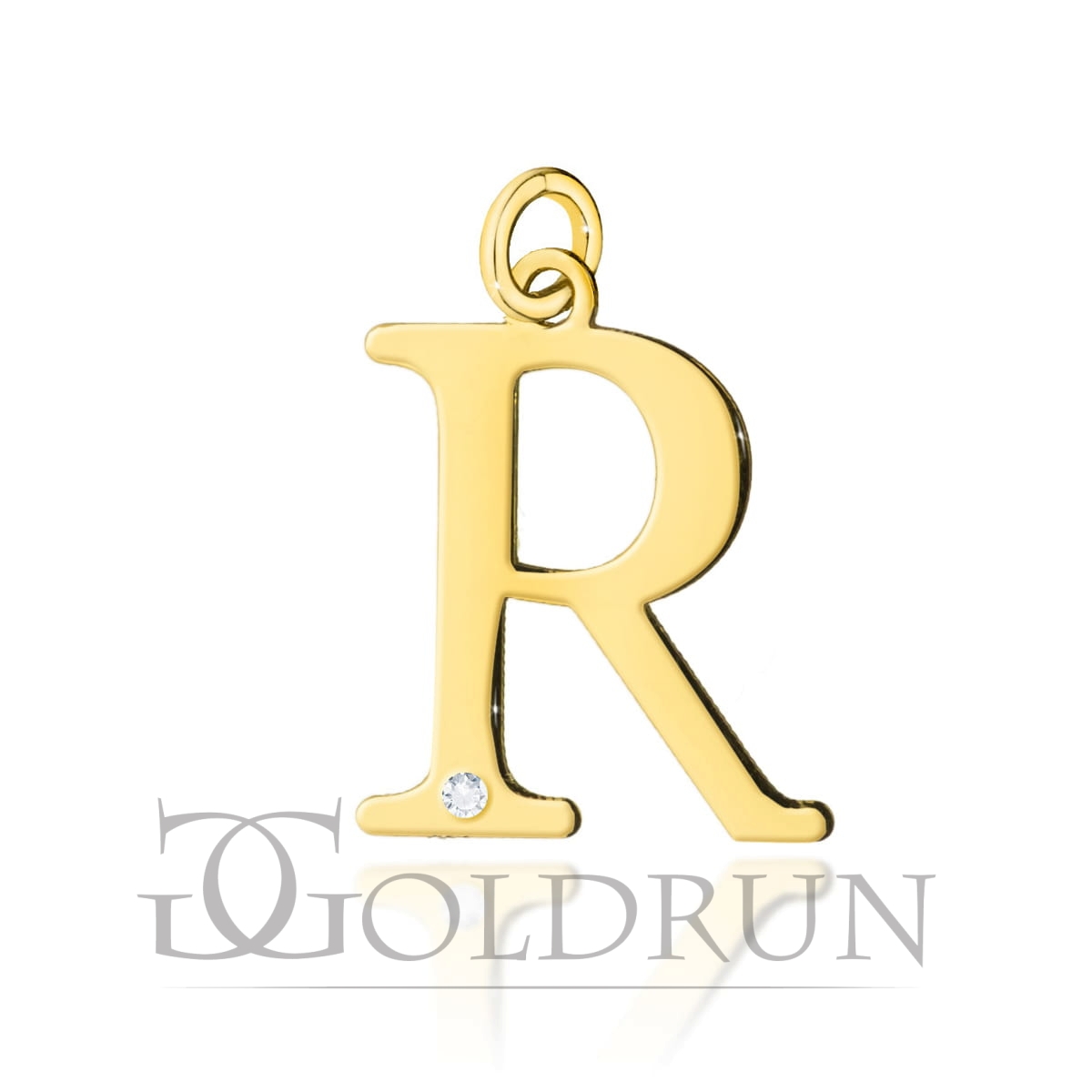 Zawieszka duża literka R z żółtego złota 585 z diamentem 0,005ct The Diamonds