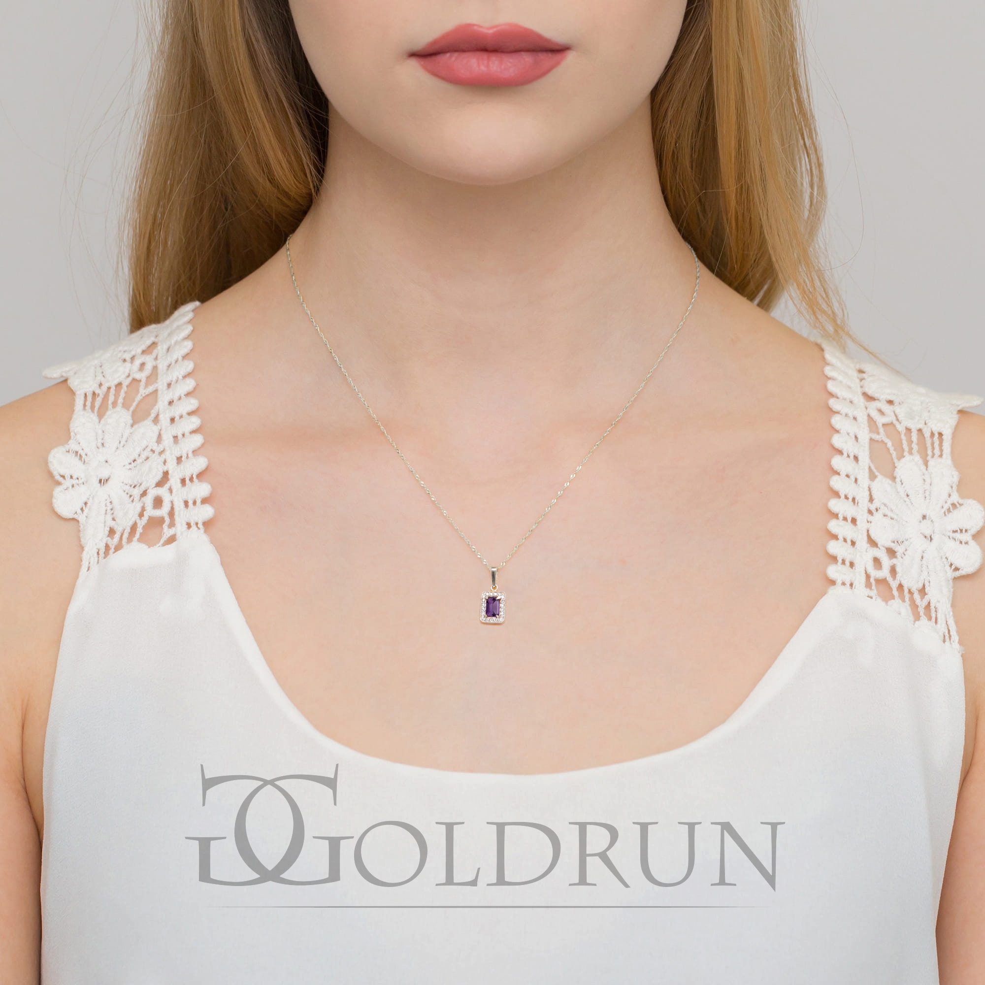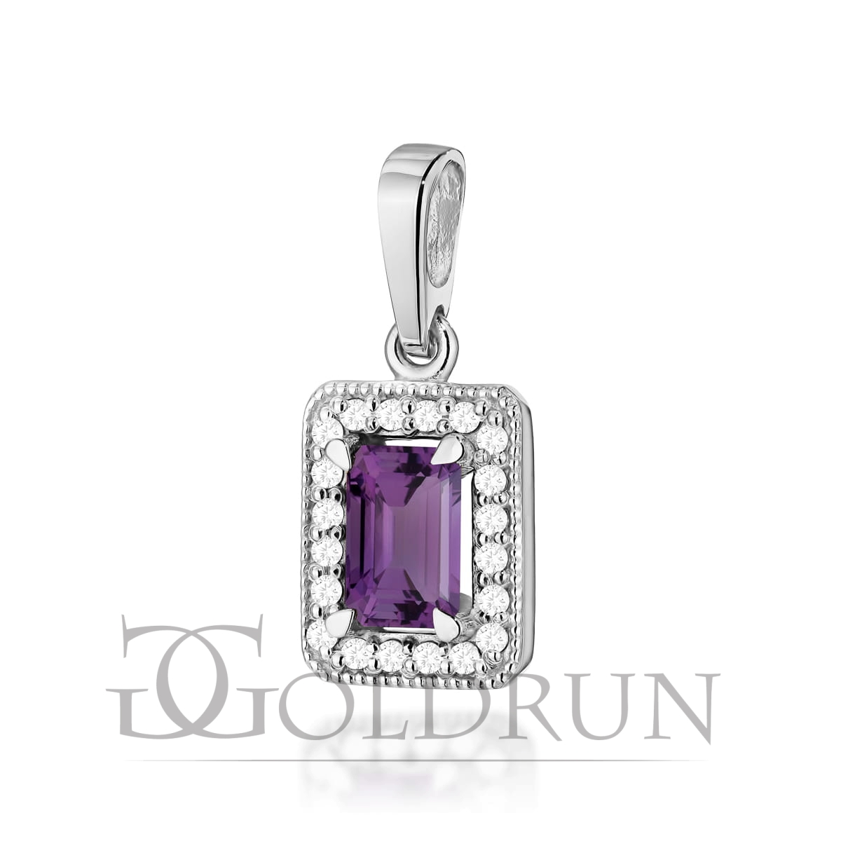 Zawieszka z białego złota 585 z ametystem i diamentami 0,10ct The Diamonds