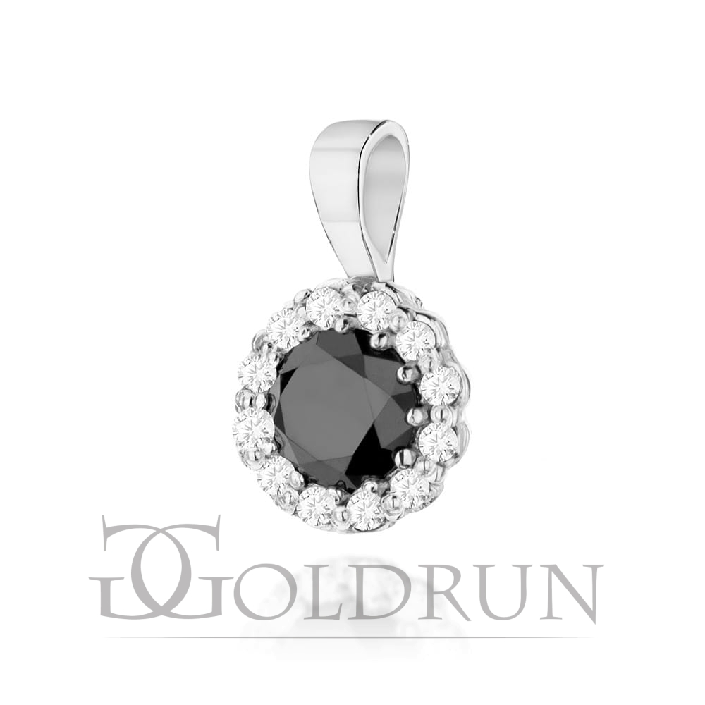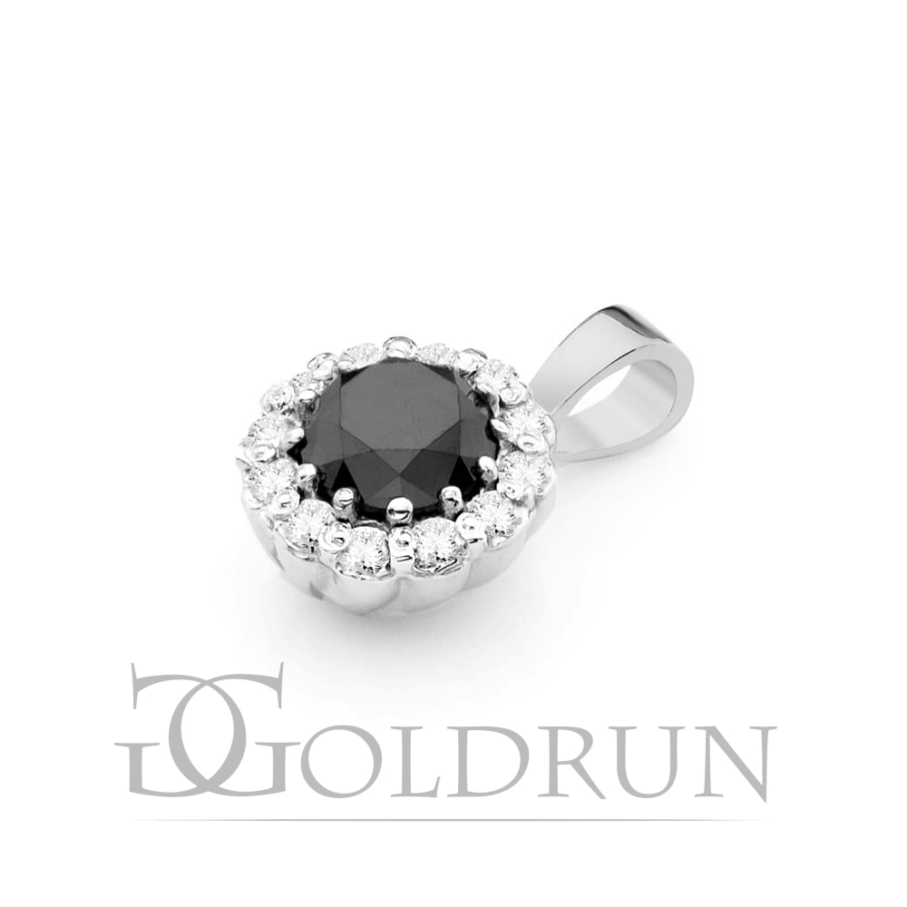 W zawieszce oprawiony czarny diament o masie 0,500ct