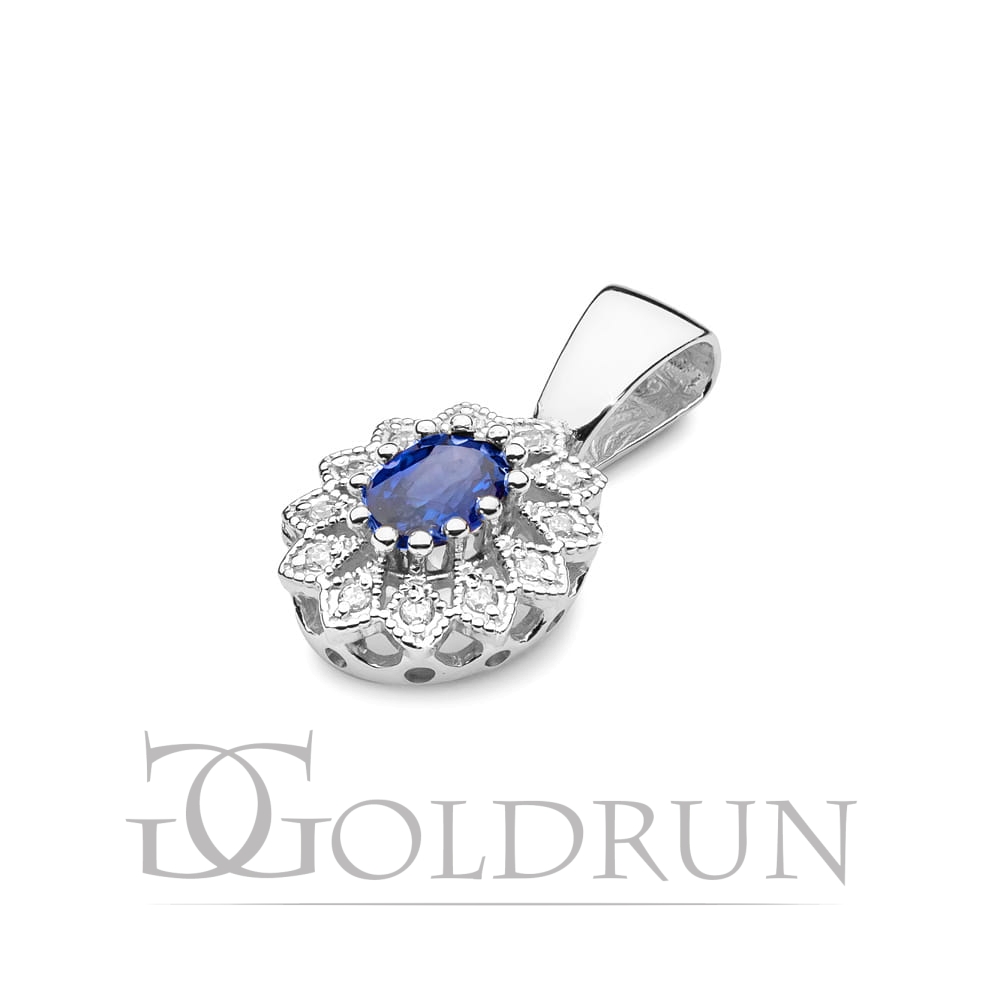 Zawieszka z białego złota 585 z szafirem i diamentami 0,10ct The Diamonds