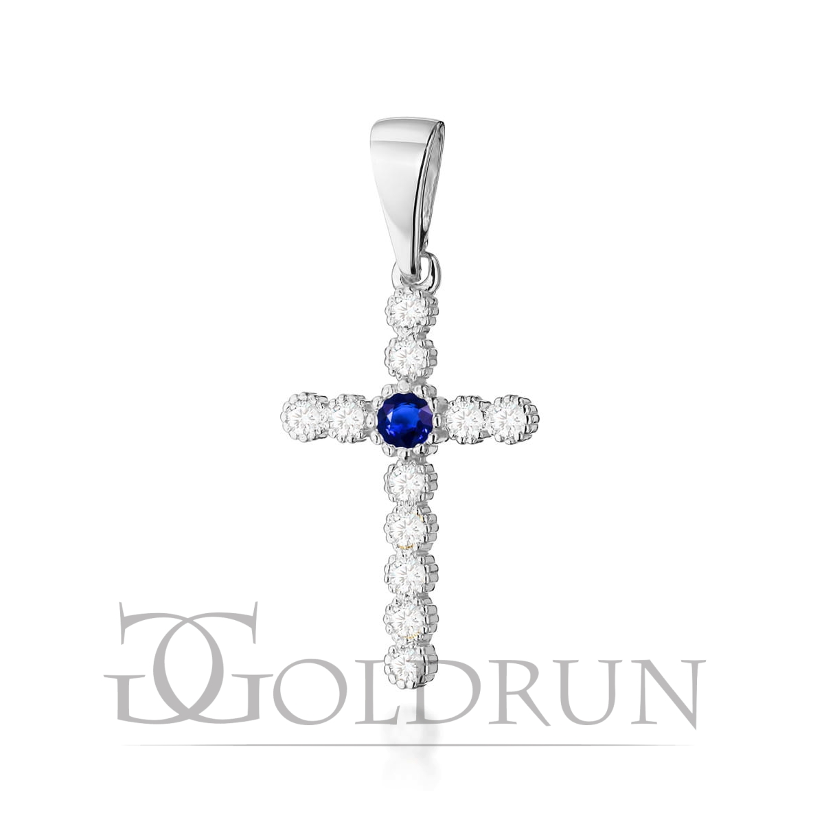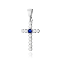 Zawieszka z białego złota krzyż z szafirem i diamentami 0,22ct The Diamonds
