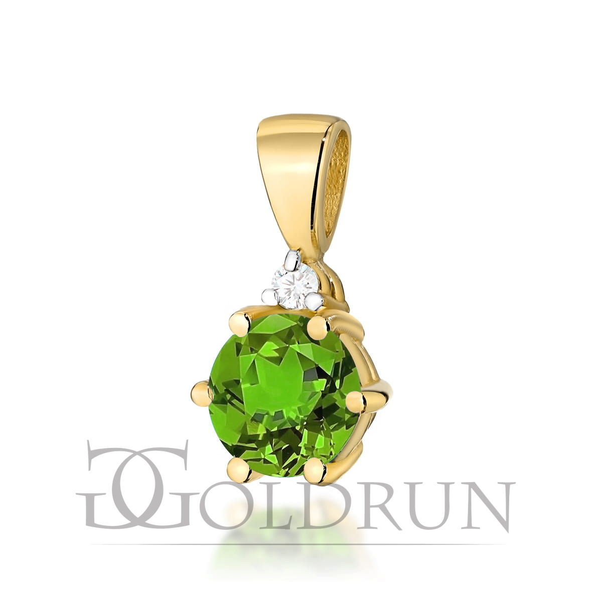 Zawieszka z żółtego złota 585 z oliwinem i diamentem 0,015ct The Diamonds