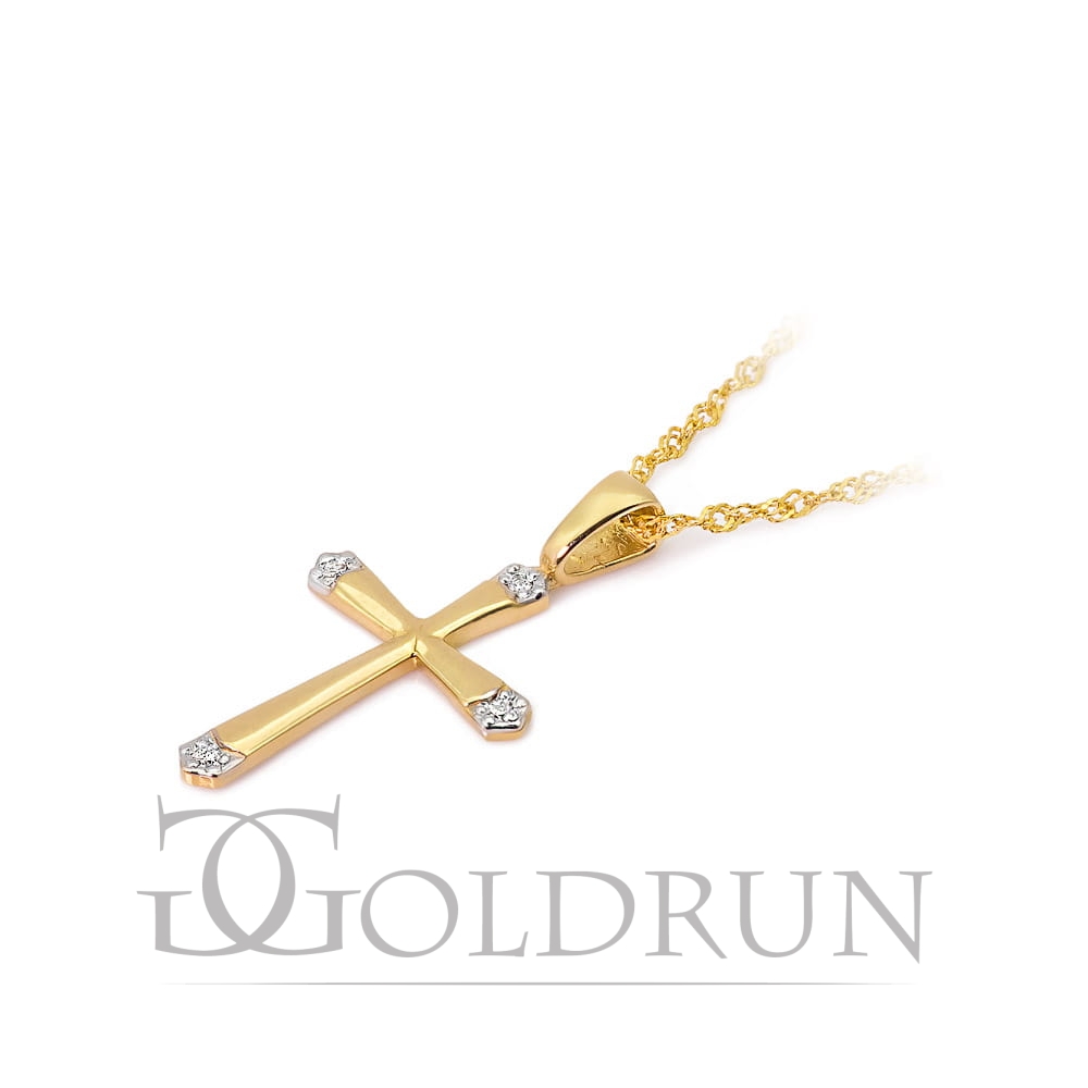 Zawieszka z żółtego złota krzyż z diamentami 0,02ct The Diamonds