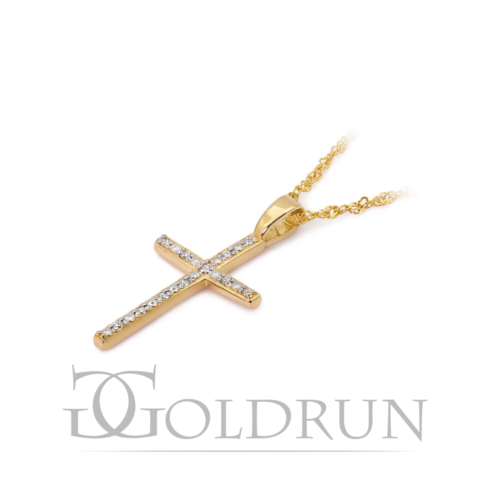 Zawieszka z żółtego złota krzyż z diamentami 0,05ct The Diamonds