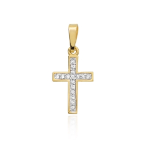 Zawieszka z żółtego złota krzyż z diamentami 0,08ct The Diamonds