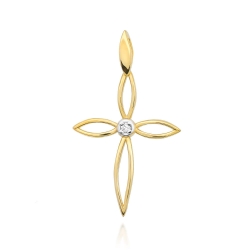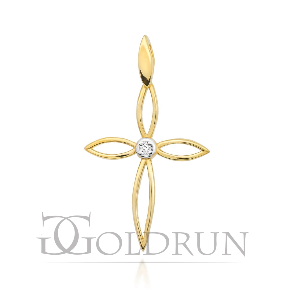 Zawieszka z żółtego złota krzyż z diamentem 0,02ct The Diamonds