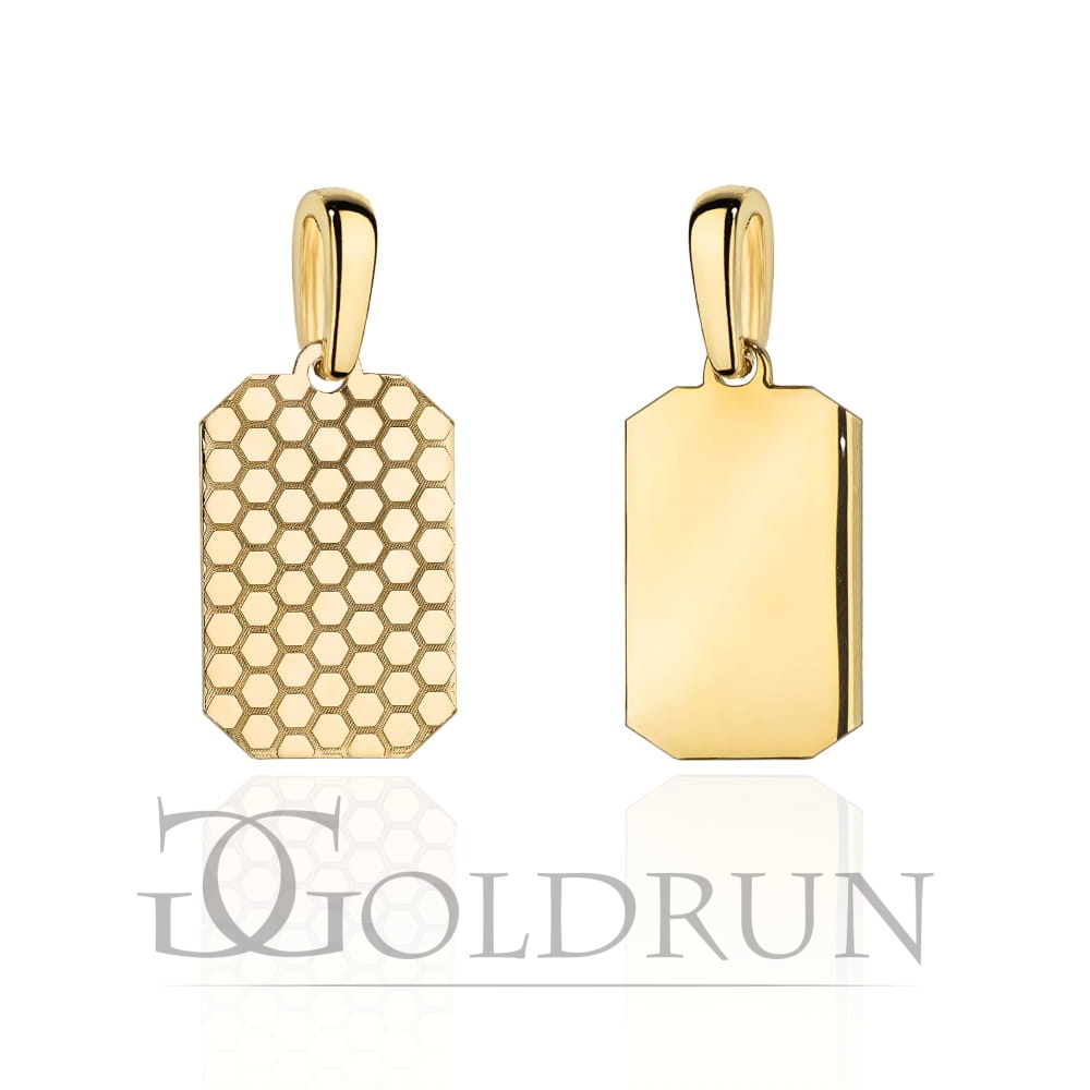 Zawieszka złota blaszka dwustronna zaokrąglona ze zdobieniem średnia